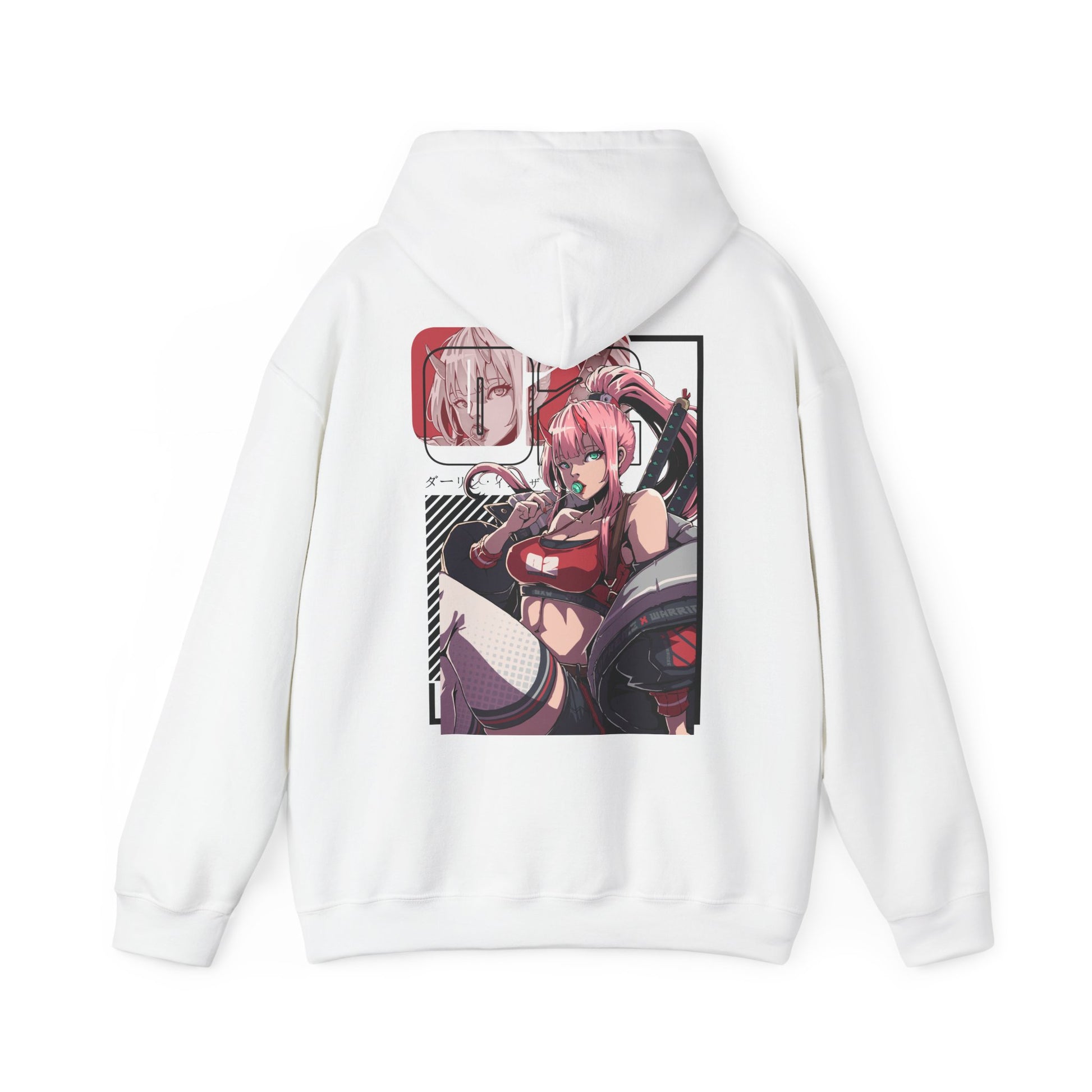 The pullover style hoodie is perfect for any casual and everyday streetwear occasion. The roomy kangaroo pocket and drawstring hood shelter your hands and headphones on chilly commutes. The back features a bold, anime-inspired art print with sharp geometric accents and stylized lettering. Wear it layered over a tee for casual days or as a statement layer at meetups and panels.